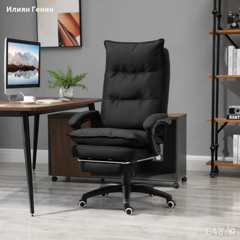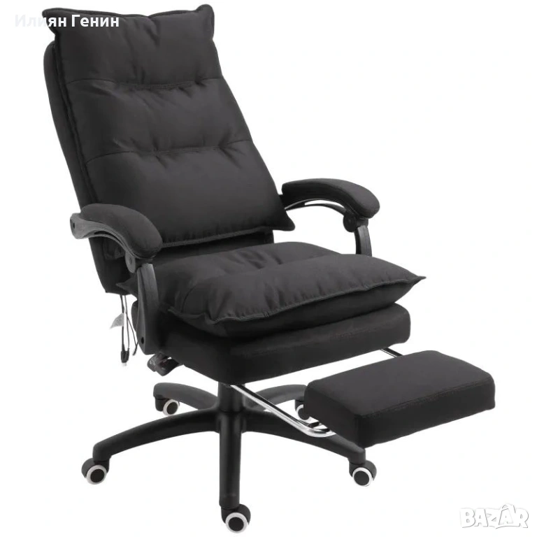 Офис стол Vinsetto с функция за масаж, с функция за накланяне и въртене, с поставка за крака, черен - 170.00 €.