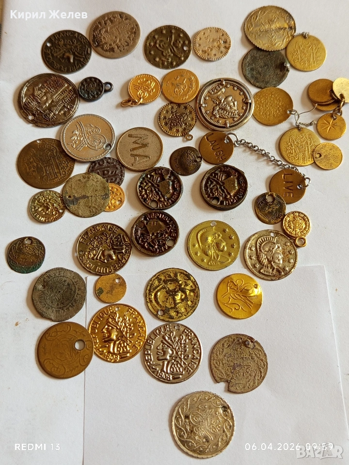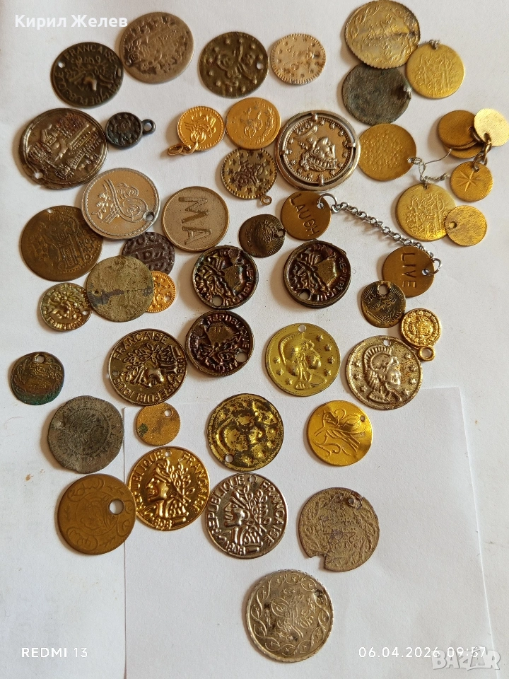 Лот 50 броя месингови пендара монети продупчени за НАКИТ, НОСИЯ, ЗАБРАДКА КОЛЕКЦИЯ 50056 → Обява 54104870