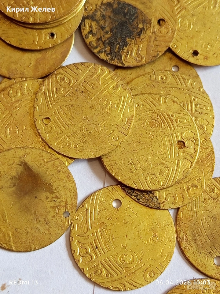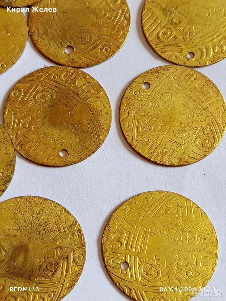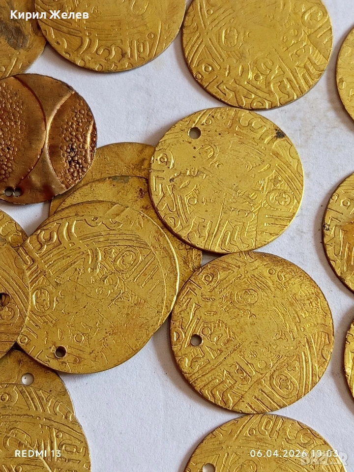 Лот 57 броя месингови пендара монети продупчени за НАКИТ, НОСИЯ, ЗАБРАДКА КОЛЕКЦИЯ 54541 → Обява 54104908