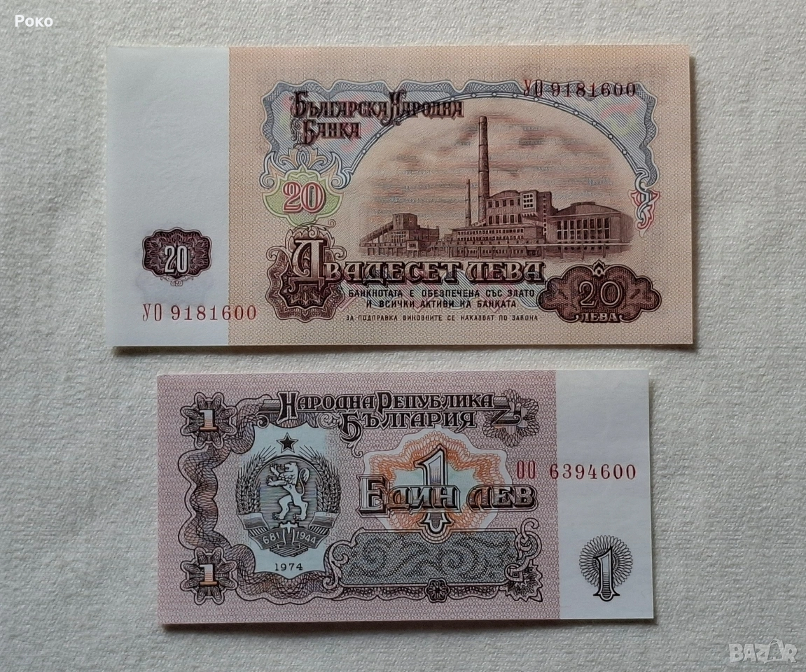 Банкноти 1лв 20лв 1974година. Завършват на 600. → Обява 54105265