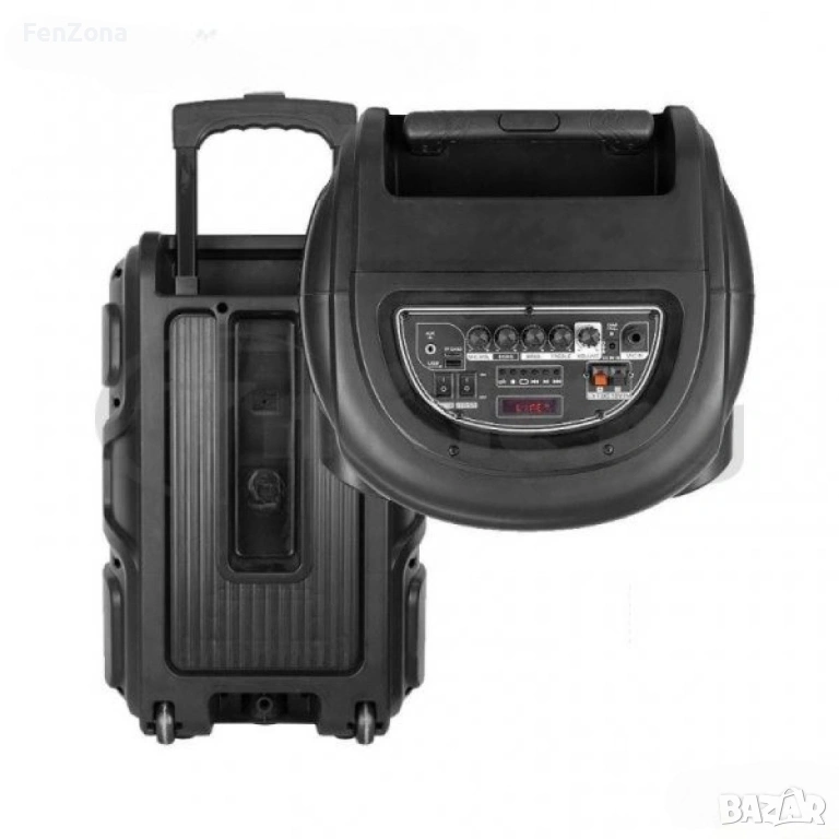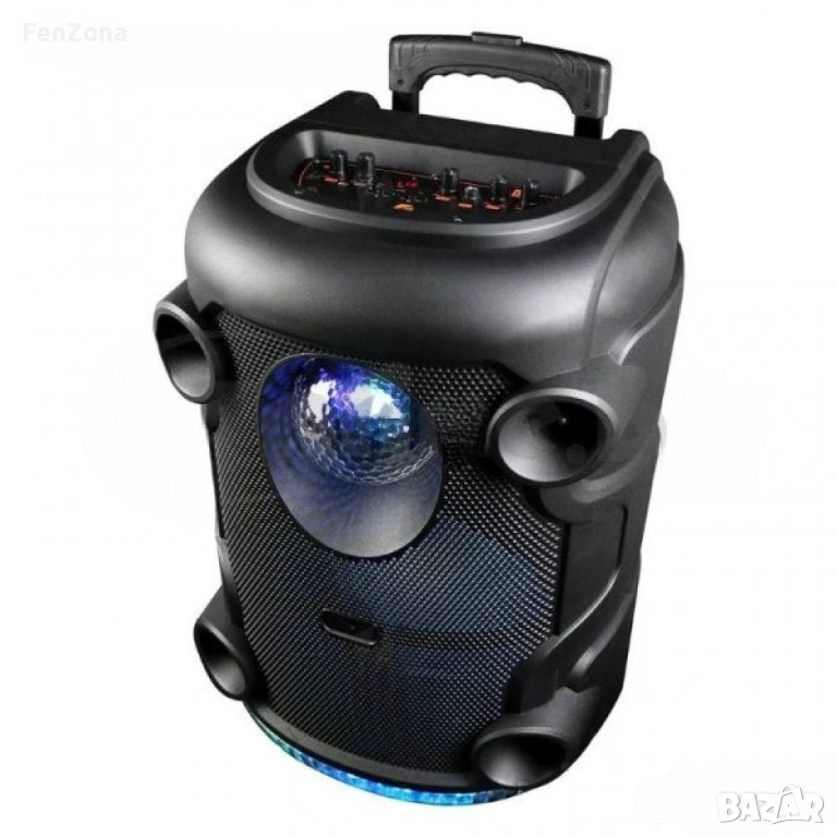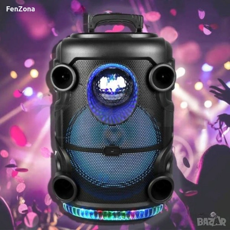 Системата има изключително новаторски HI - TEC дизайн, за нейното лесно пренасяне в горната и част е налична удобна дръжка, което помага при пренасяне до определеното място на събитието открито пространство или зала. Системата има правоъгълна форма със заоблени извивки. Високоговорителят е с 12“ размери и кръгъл дизайн, разположен в долната част на колоната. В горната част на колоната има тъмно син глобус, през който се отразява цветомузиката. В най – долната част на колоната има синя свето отразяваща лента за допълнителен ефект. Цветът на безжичния микрофон, който е част от комплекта е черен, като той поддържа един от най – търсените „ехо“ ефект, повишаване качеството на звука на изпълненията. Дистанционното е с правоъгълна форма в сив цвят с двуредово разположение на бутоните, които са десет на брой и покриват възможността всички функции на устройството да бъдат управлявани от разстояние.