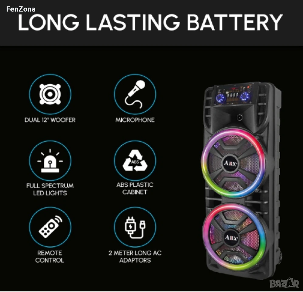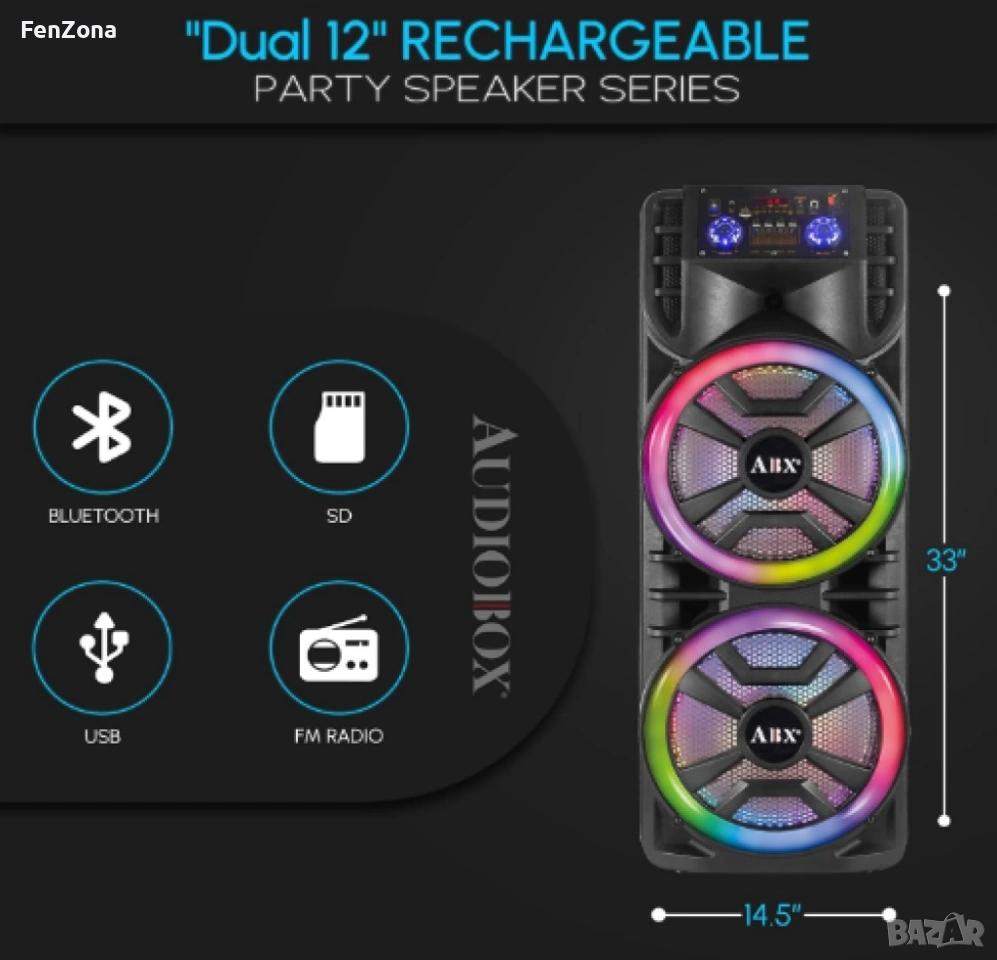 - Изпитайте аудио без изкривяване с технологията WaveSync и двойните 12" високоговорители;