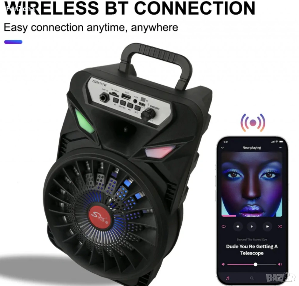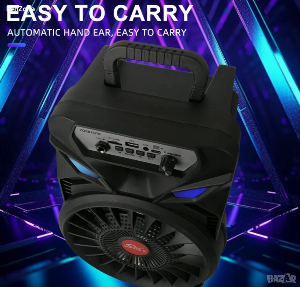 Преносима безжична тонколона 8" с микрофон,12м гаранция → Обява 54105341