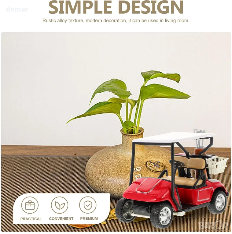 Миниатюрна играчка - голф количка, лят модел голф количка в мащаб 1:36, червена
