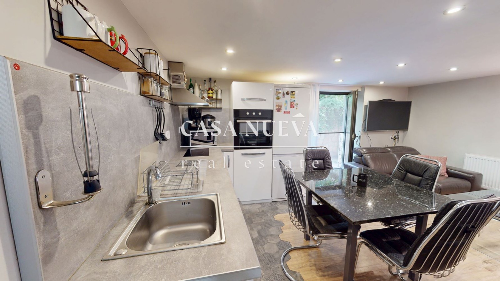 Жилището е с функционално разпределение и включва антре, дневна с кухненски бокс, спалня и баня с тоалетна. Към апартамента има английски двор, който осигурява допълнително усещане за пространство.