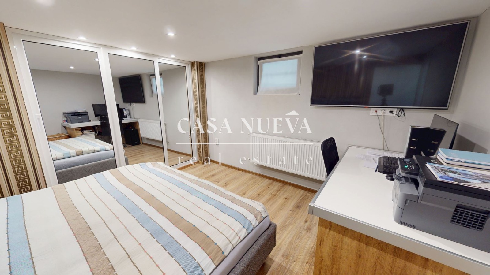 CASA NUEVA REAL ESTATE отдава под наем двустаен апартамент с площ от 55 кв.м., разположен на партерен етаж с английски двор в къща в централната част на гр. София, на ул. Люлин планина. Локацията е изключително удобна на около 10 минути пешеходно разстояние от Национален дворец на културата, на 3 минути от УМБАЛСМ Пирогов и на около 6 минути от метростанциите Медицинска академия и НДК II.