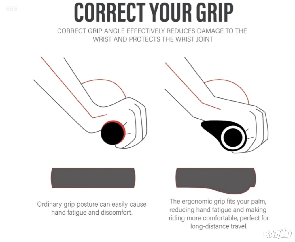 Ергономичен дизайн Дръжки за велосипеди с форма на крило: Проектирани за ръкохватки за планински велосипеди, намаляват или елиминират болката в ръцете, изтръпването на пръстите, болките в китките и подкожното налягане, като същевременно поддържат ръката и китката в ергономично идеална позиция, идеални за дълги карания.