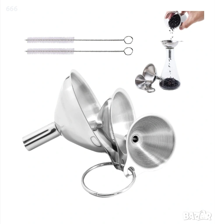 Комплект 3 броя фунии от неръждаема стомана + 2 броя четки за почистване → Обява 54105792