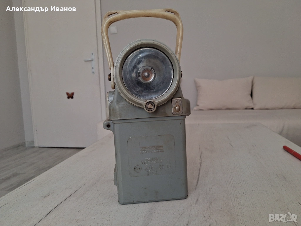 Фенерът е в отлично визуално състояни,няма счупвания и пукнатини.Батерията е налична и е вътре в корпуса.