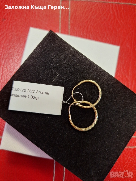 Златни обеци 1,06гр 14к → Обява 54106045