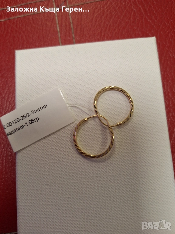 Златни обеци 1,06гр 14к, снимка 1 - Обеци - 54106045 Златни обеци 1,06гр 14к, снимка 2 - Обеци - 54106045 Златни обеци 1,06гр 14к, снимка 3 - Обеци - 54106045 1/3