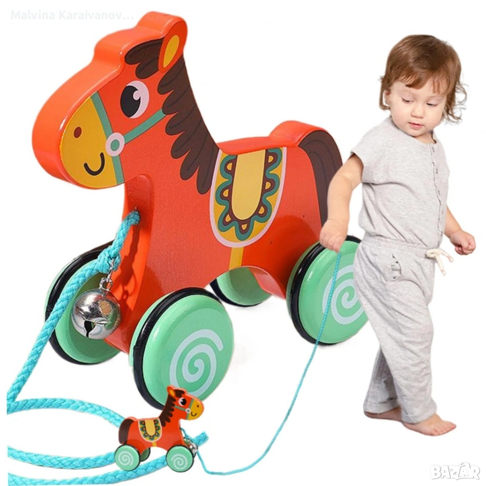 Играчката за дърпане/бутане е изработена от дърво и е идеална за малки деца, които започват да развиват координация и двигателни умения. Със своите весели цветове и забавни форми, тя привлича вниманието и стимулира въображението на детето. Връвчицата позволява лесно дърпане или бутане, като така детето се учи на баланс и движение. Характеристики: Материал: Дърво; Дължина: 185 мм; Ширина: 80 мм; Височина: 150 мм; Цвят: Многоцветен; Предлага се в 4 варианта: Конче, Мишле, Пате, Куче; Подходяща за деца от 1 до 3 години, играчката е безопасна, с гладка повърхност и ярки цветове, които привлекат вниманието на малчуганите.