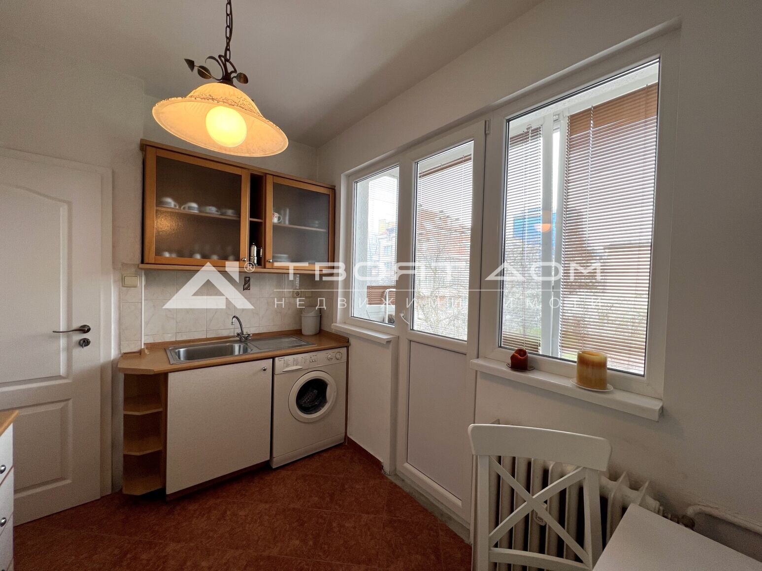 кухнята е напълно оборудвана (печка, пералня, хладилник)