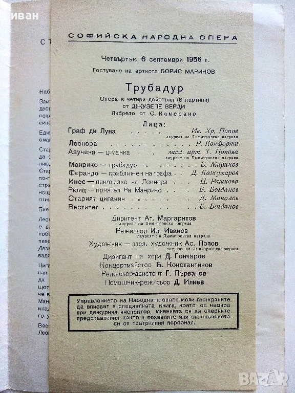Трубадур - Народна опера София - 1956г