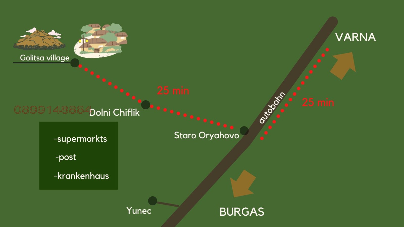 Located in the picturesque village of Golitsa, just 50 km from Varna and 25 km from the Black Sea coast, the property offers clean air, beautiful scenery, and a quiet natural environment.