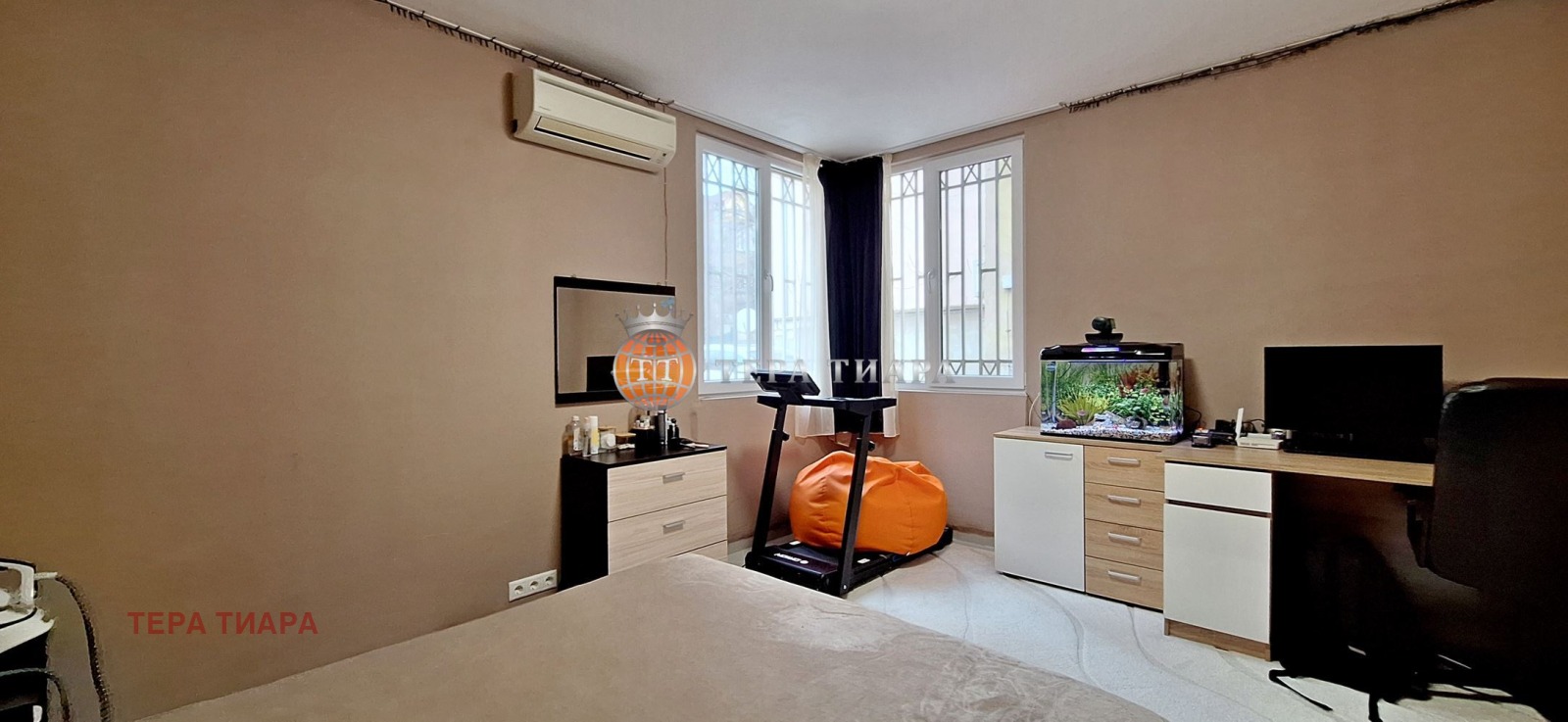 Агенция ТЕРА ТИАРА продава ДВУСТАЕН апартамент, представляващ 1 етаж от 2 етажна къща, находяща се на бул. Христо Ботев 108, построена през 2002 година. Жилището е с чиста площ от 41 кв. м. и се състои от Хол с преход към Кухненски бокс и преход към Спалня, Антре и Баня с тоалетна. Изложение: Запад/Север/Изток. Отопление: Климатици.