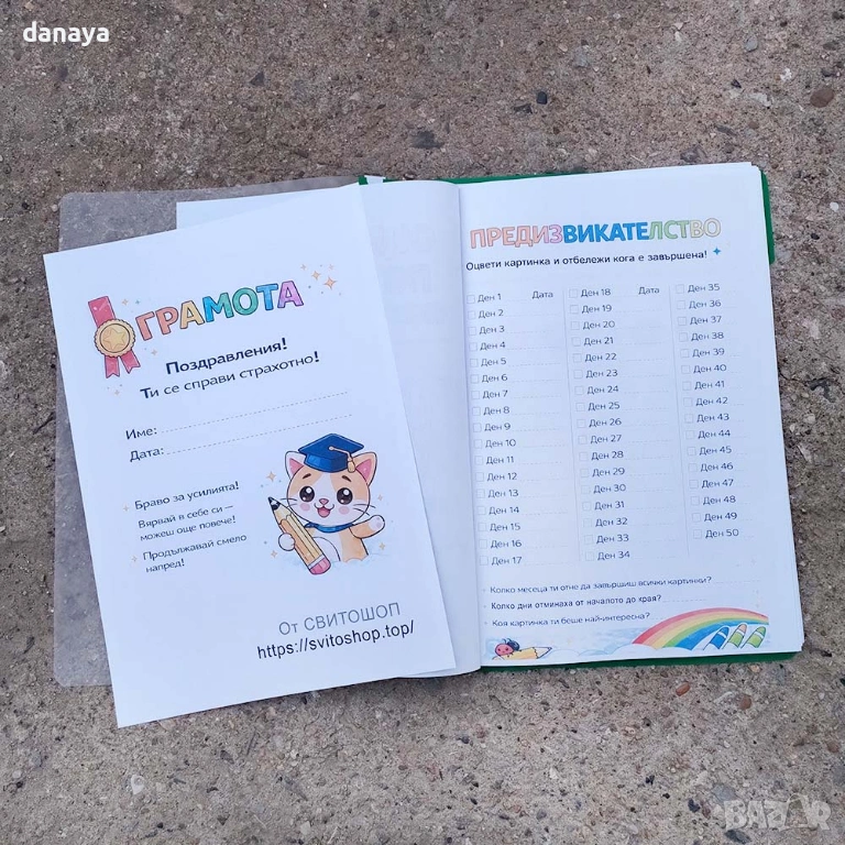 След като детето премине през всички предизвикателства, го очаква истинска награда – грамота, която носи гордост, мотивация и чувство за успех. Изработена от по-плътен картон, подходяща за запазване като спомен.