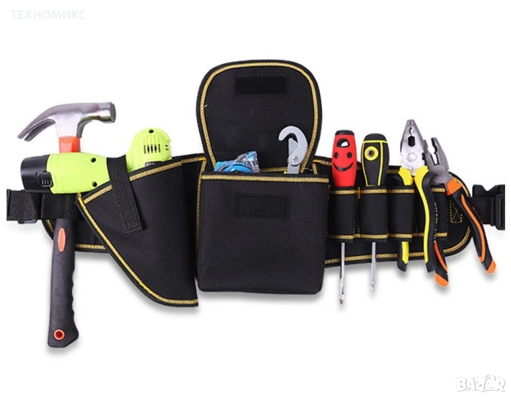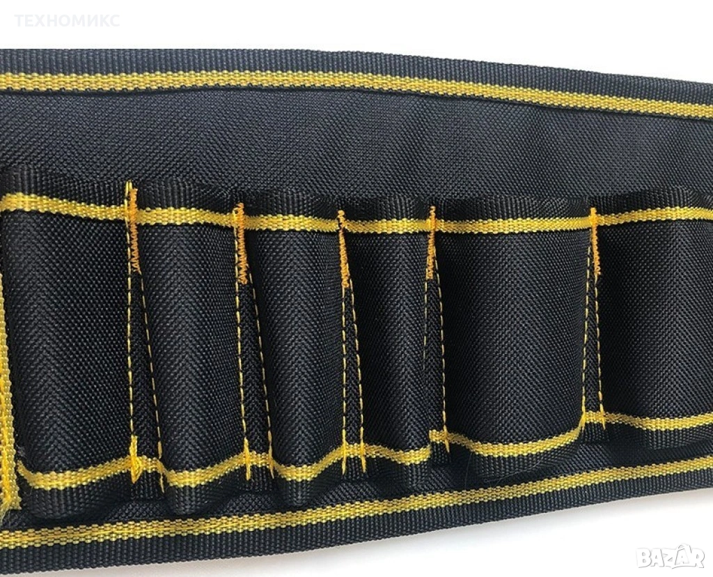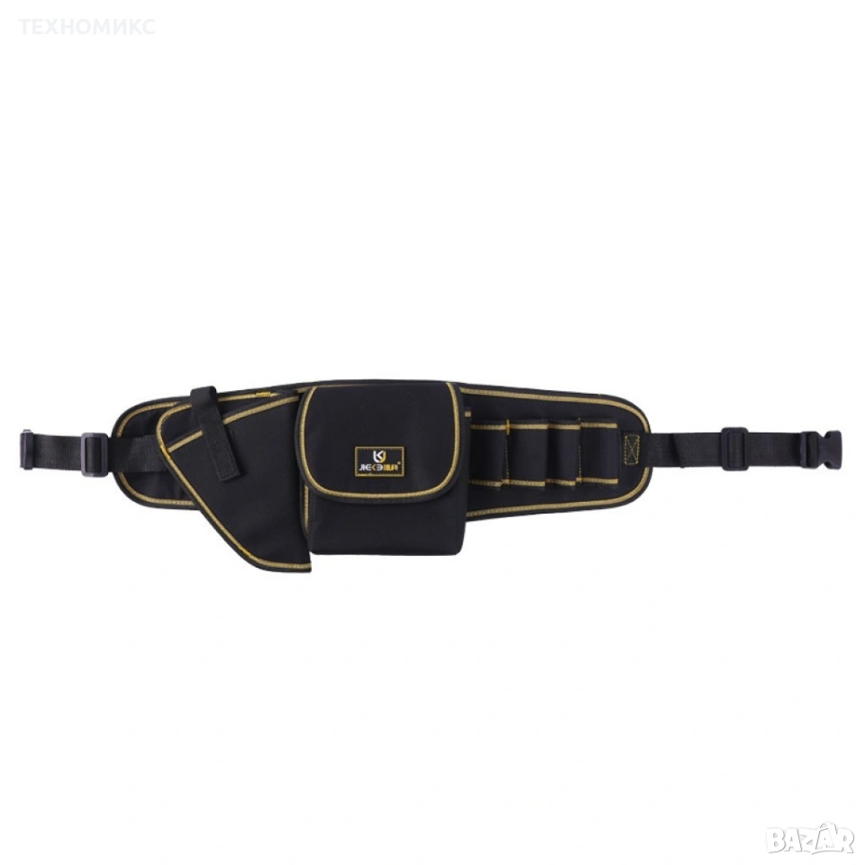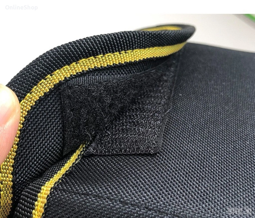 Чанта (подарък) материал: Оксфорд/Полиестер/PVC/деним, размери 16 x 60 см, тегло 320 г, издържа до 30 кг, цвят черен с жълти кантове