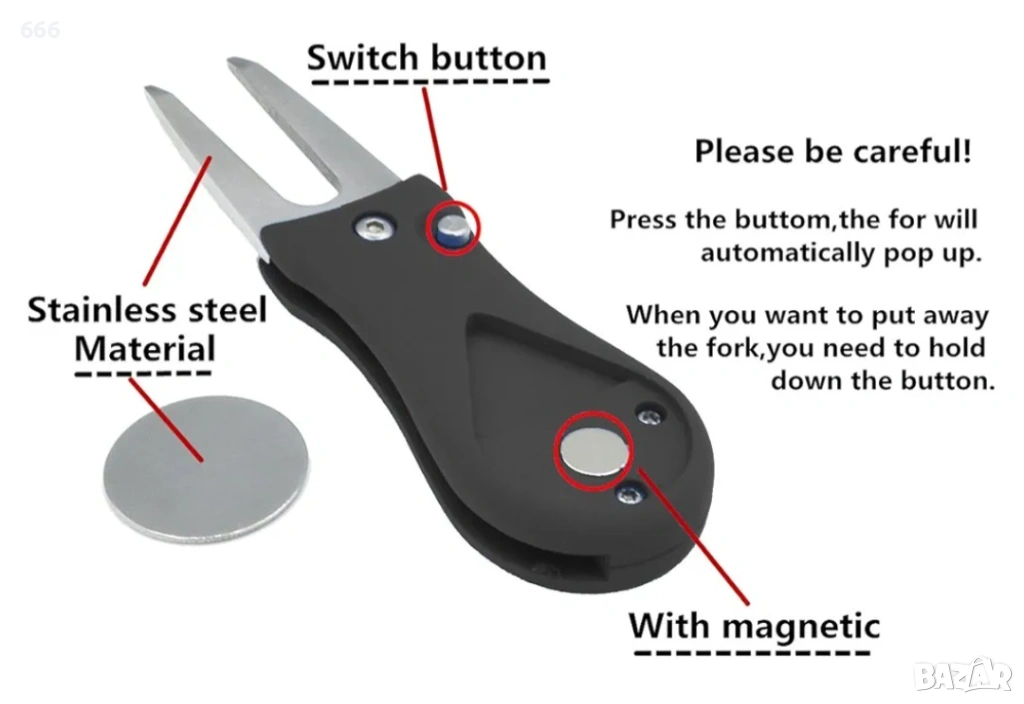 Инструмент за ремонт на голф ями с изскачащ бутон и магнитен маркер за топката, снимка 1 - Други - 54107951 Инструмент за ремонт на голф ями с изскачащ бутон и магнитен маркер за топката, снимка 2 - Други - 54107951 Инструмент за ремонт на голф ями с изскачащ бутон и магнитен маркер за топката, снимка 3 - Други - 54107951 Инструмент за ремонт на голф ями с изскачащ бутон и магнитен маркер за топката, снимка 4 - Други - 54107951 Инструмент за ремонт на голф ями с изскачащ бутон и магнитен маркер за топката, снимка 5 - Други - 54107951 1/5