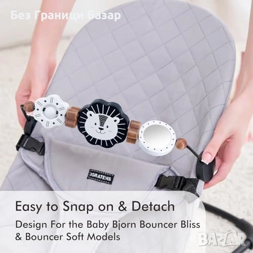 Дървена играчка за бебешки шезлонг с черно-бял дизайн за ранно зрително стимулиране