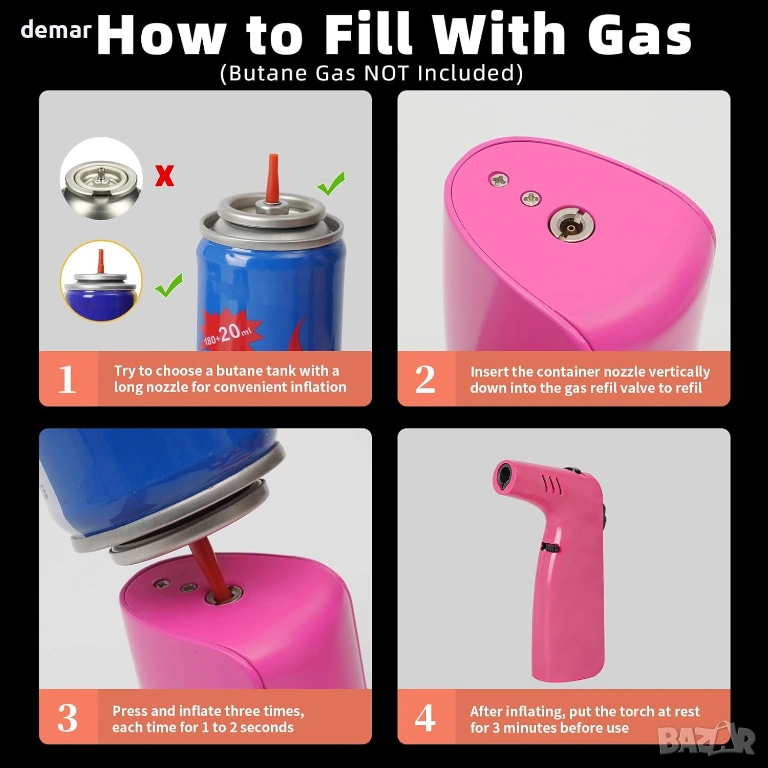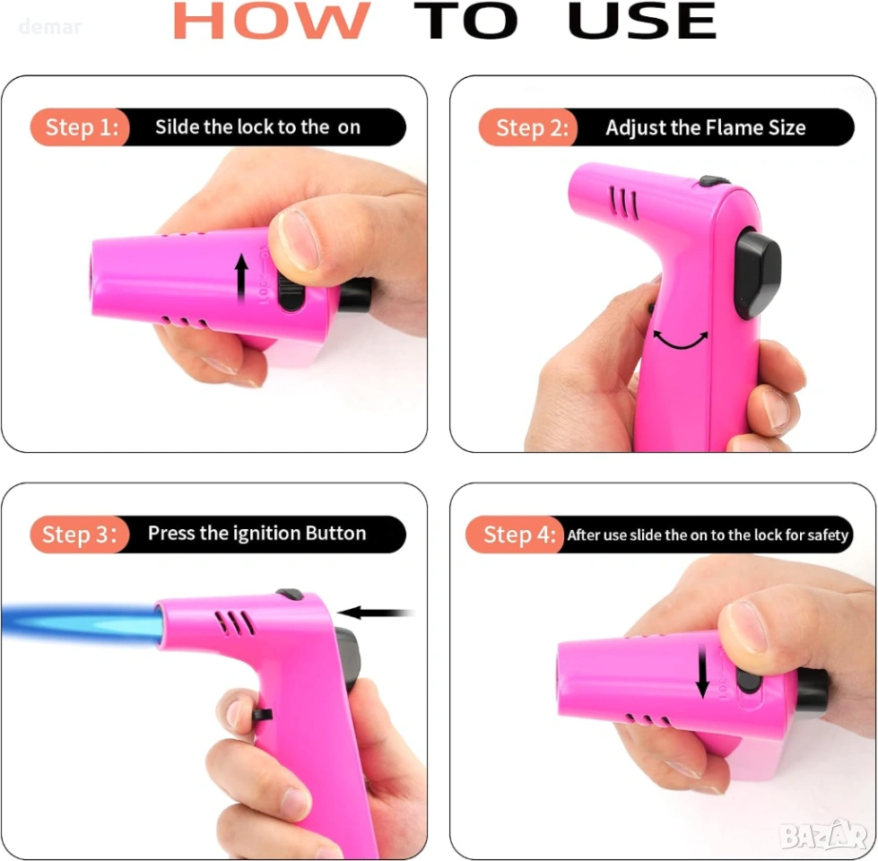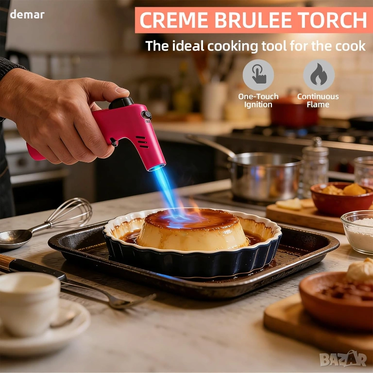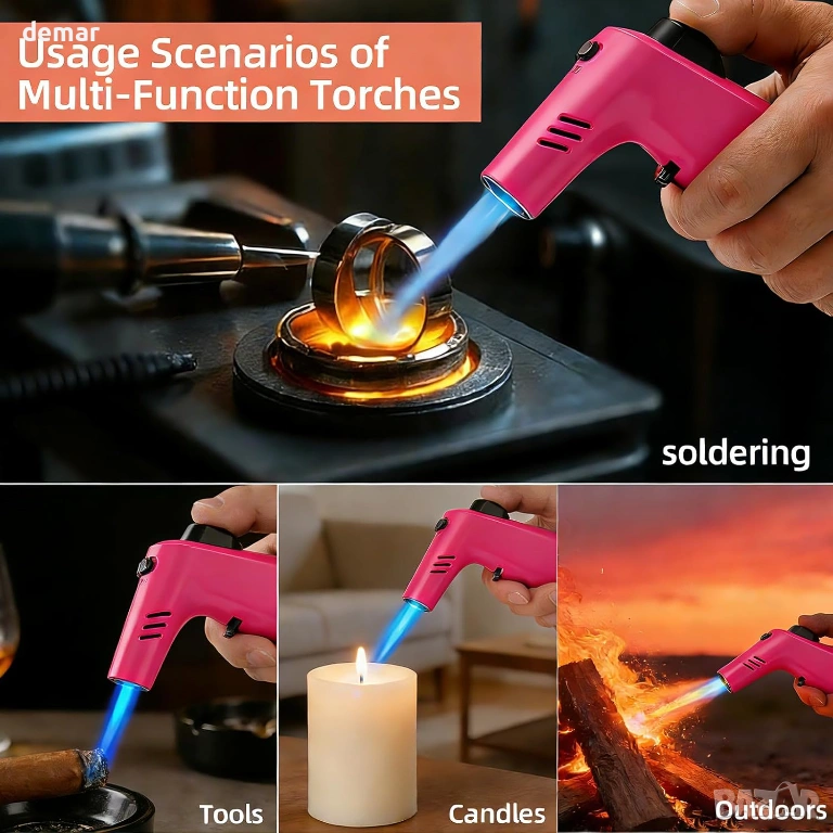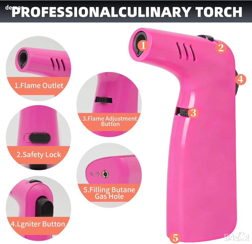 горелка с регулируем пламък до 1300°C, подходяща както за задачи с висока температура като запояване, така и за деликатни кулинарни приложения като карамелизиране. Разполага с вградена предпазна ключалка за предотвратяване на случайно запалване, осигуряваща сигурно съхранение и безопасност на децата. Проектирана за многократна употреба със стандартен бутан, предлагаща екологична алтернатива на запалките за еднократна употреба. Многофункционалната ѝ функционалност я прави идеална за готвене, къмпинг, „Направи си сам“ работа и палене на огън, докато ветроустойчивият пламък осигурява надеждна работа дори на открито. Преносима и лесна за употреба, което я прави практичен инструмент за дома, работилницата или употреба на открито, както и универсален вариант за подарък.