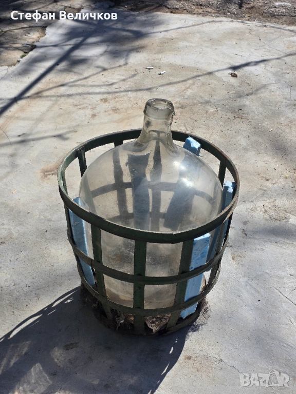 Описание: Продавам масивна стъклена дамаджана с вместимост 50 литра. Дамаджаната е в комплект с оригиналната си метална кошница (клетка), която е изключително здрава и осигурява стабилност и лесен транспорт.
