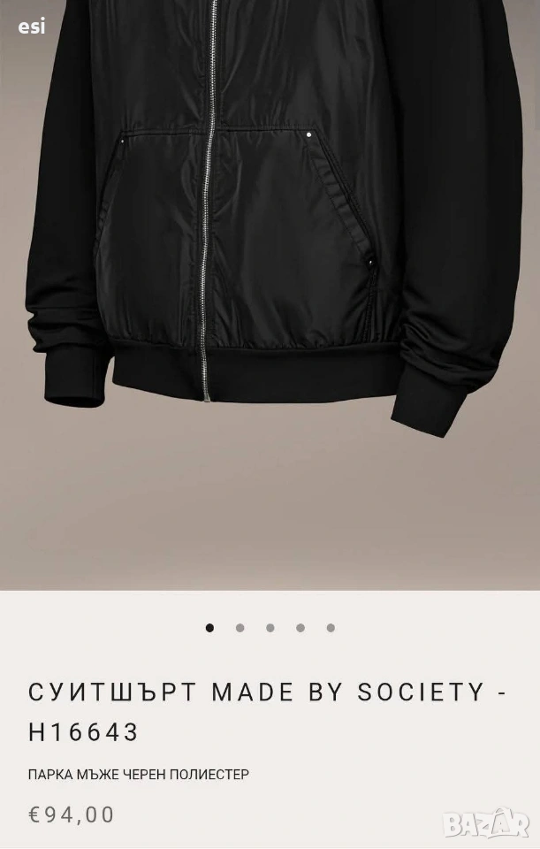 Предлагам мъжки суичър и панталон Made by Society Модерен суитшърт с метален цип и обемността на качулка, идеален за слоесто обличане. Минималистичния дизайн е допълнен от практични предни джобове и дискретен лого "MADE BY SOCIETY" отпечатан на гърба. Джогинг панталон Made by Society предлагат премиум градски изглед, комбинацията от памучен материал и техническите вложки добавя съвременен привкус. Страничните джобове с метални ципове и дискретното лого добавят функционалност и стил. В перфектно състояние Размер М Обща цена 100 €