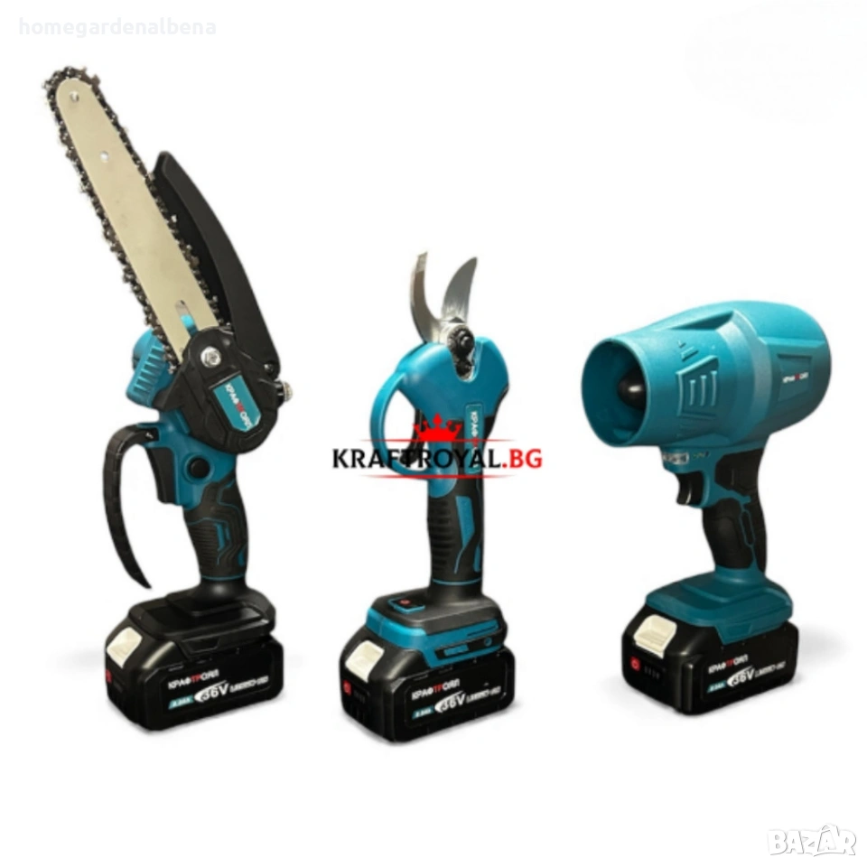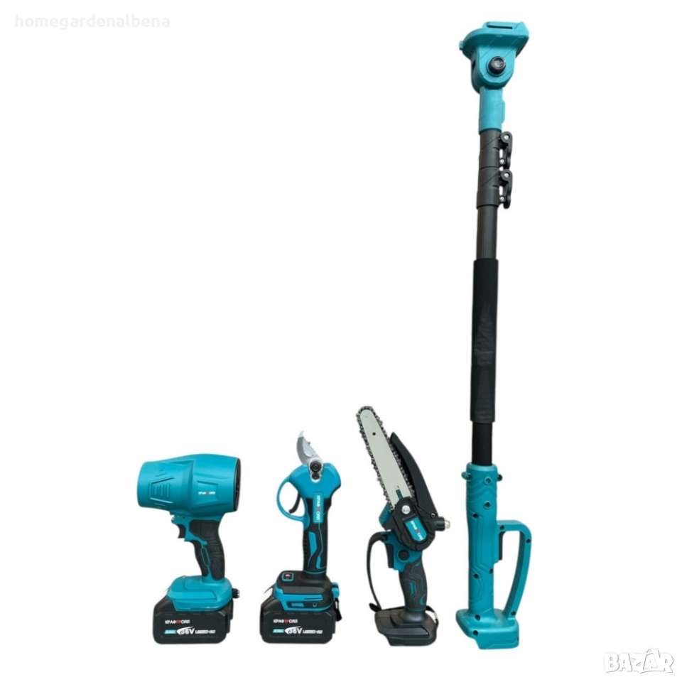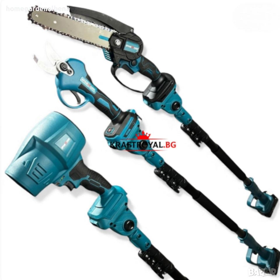 акумулаторен комплект, лозарска ножица, мини трион, акумулаторен трион, духалка, leaf blower, 4 в 1, градински инструменти, kraftroyal, ножица за клони, резачка, телескопичен прът, cordless tools