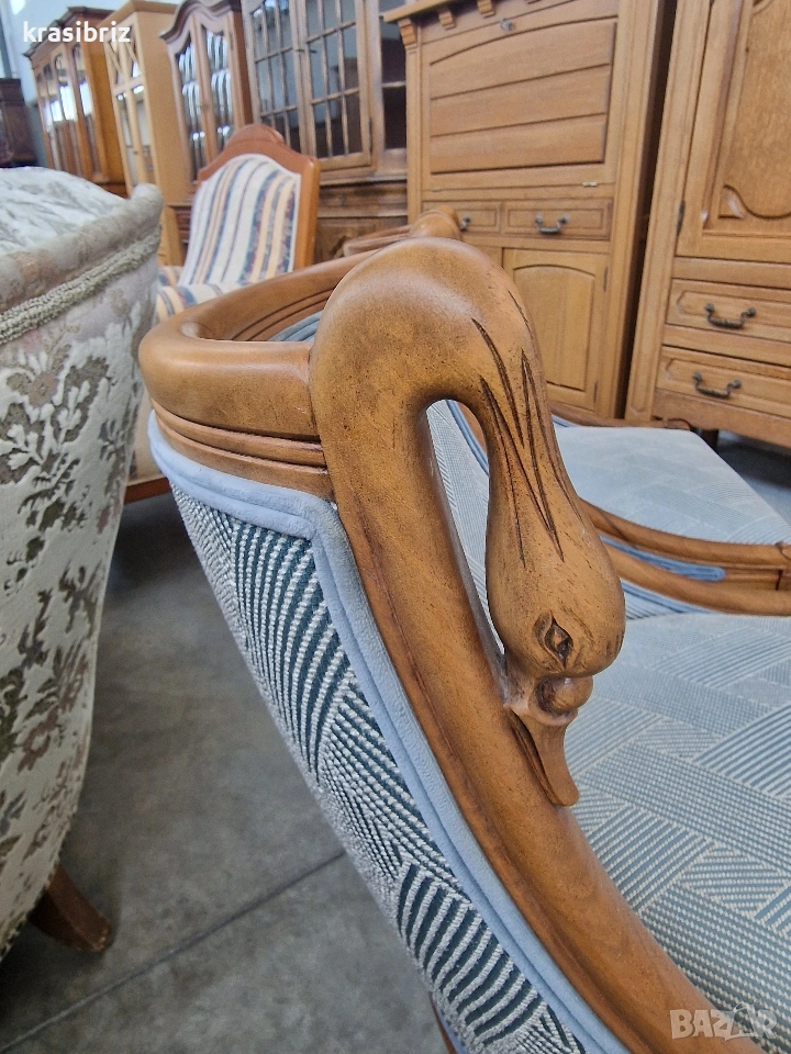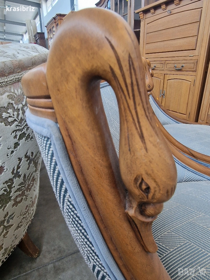 Креслото е изработено от черешово дърво,с дърворезба във формата на Лебед!