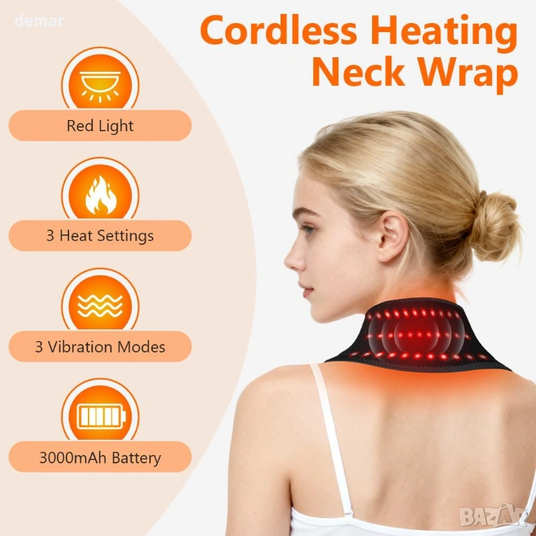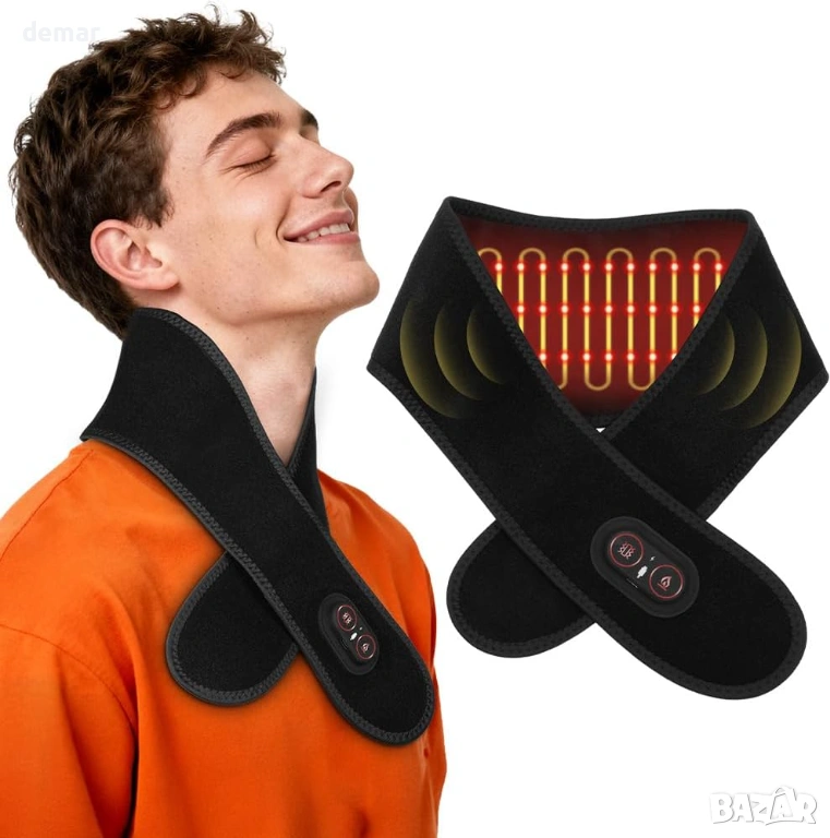 Безжична нагревателна подложка за врата, акумулаторна, 3 нива, 3 вибрации, облекчаване на болката