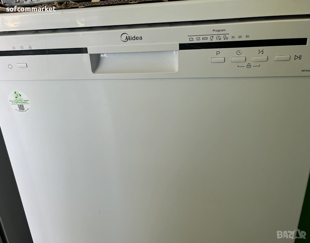 Продавам свободностояща съдомиялна машина Midea MFD60S121W-IT. Уредът е в отлично техническо състояние и работи безотказно. Изключително икономичен и лесен за управление модел, подходящ за всяко домакинство. Леко огъната ламарина в долен ляв ъгъл(разгледайте снимките).