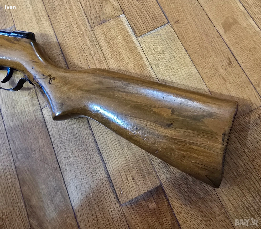 Въздушна пушка с дървен приклад 5,5мм. Пушката е нова. Има релса за монтиране на оптика.