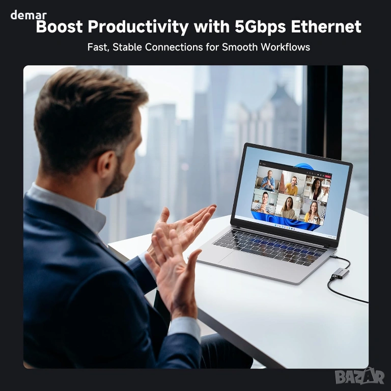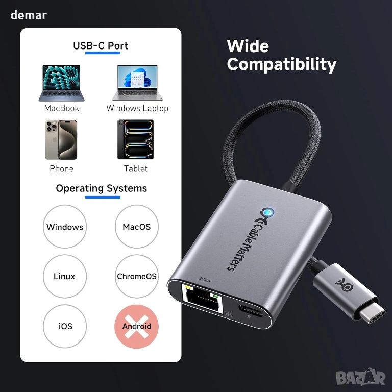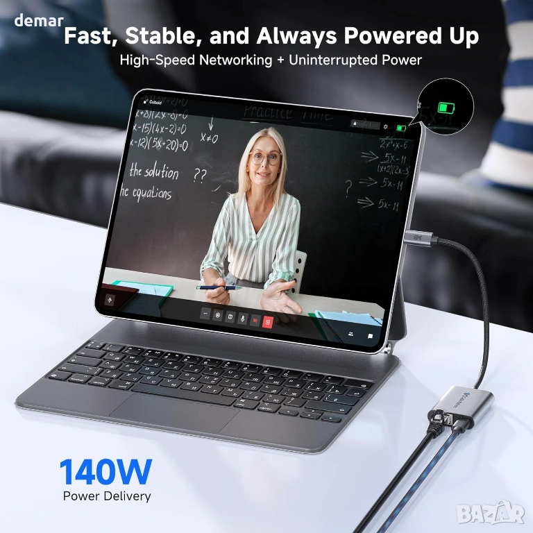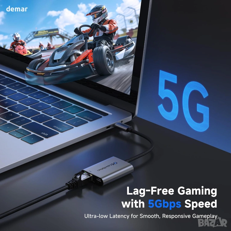 USB-C към 5GbE Ethernet адаптерът осигурява ултрабързи кабелни скорости до 5000 Mbps за плавно стриймване, игри, видео разговори и прехвърляне на големи файлове, като същевременно поддържа зареждане през мрежа до 140 W за USB-C лаптопи. Изграден с чипсет Realtek RTL8157, той осигурява стабилна производителност с ниска латентност и автоматично регулиране на скоростта въз основа на мрежовите възможности. Здравият алуминиев корпус спомага за разсейване на топлината, а оплетката на кабела повишава гъвкавостта и дълготрайността при редовна употреба. Съвместим с Thunderbolt 3/4/5, USB4 и стандартни USB-C портове на устройства като MacBook, Dell XPS, Surface и iPad Pro, предлагайки plug-and-play поддръжка на macOS и подобрена производителност на Windows или Linux с актуализирани драйвери.