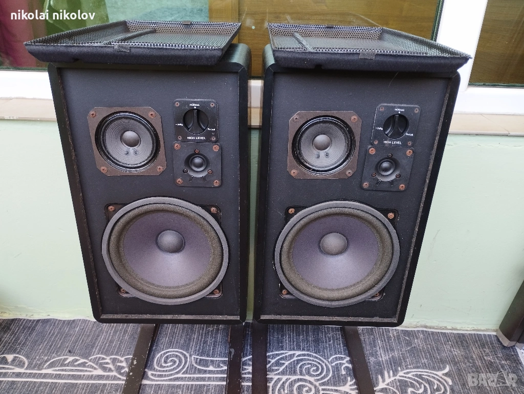 Много запазени добър звук . Бас 8 инча . Височина със стойките 65 см , цената е с тях.