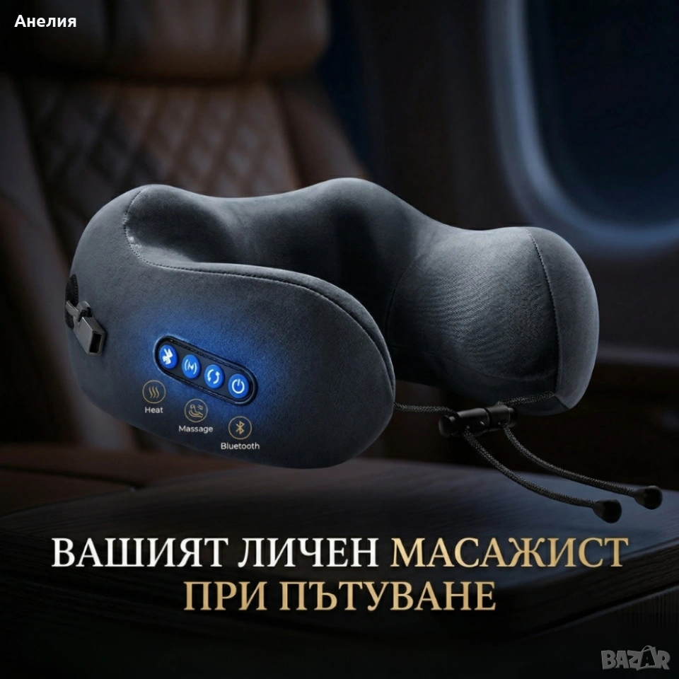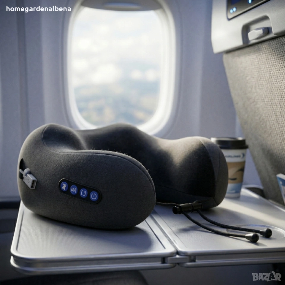 масажна възглавница врат, масажор врат, масажна възглавница с топлина, масажор с вибрации, релакс възглавница, USB масажор, масажор за офис, масажор за рамене, смарт масажор, масажна възглавница преносима