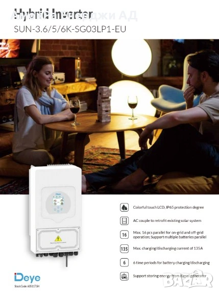 DEYE SUN-3.6K-SG05LP1-EU е интелигентно и надеждно решение за домакинства, търсещи автономия, ефективност и пълно енергийно управление чрез соларна енергия и батерии.