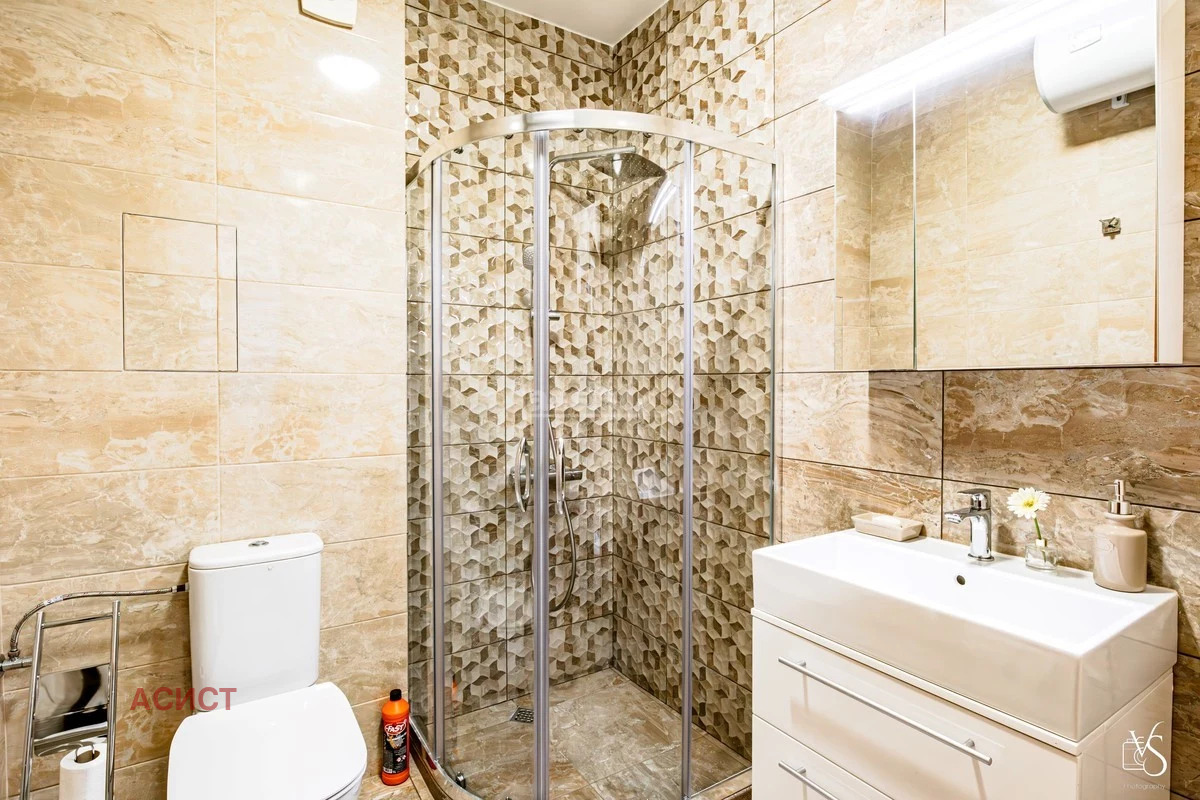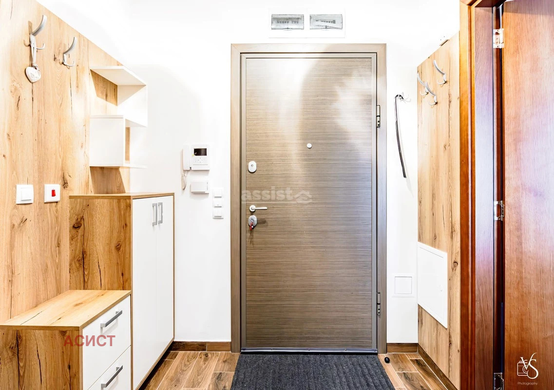 Апартаментът е разположен в нова тухлена сграда с видеонаблюдение и поддържани общи части. Разпределнието е следното: