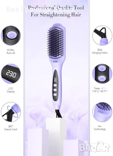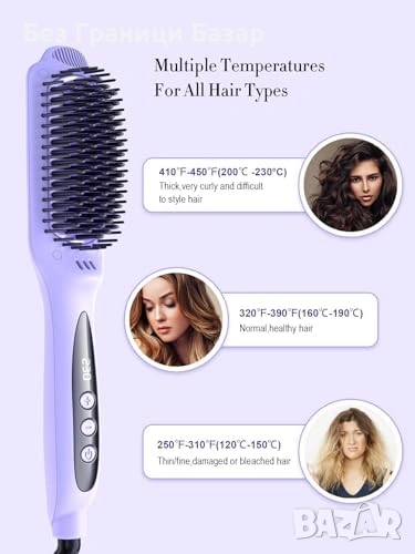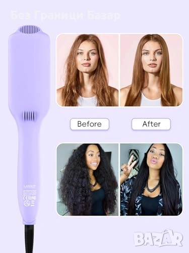 Нова Керамична йонна четка за коса изправяне LANDOT 12 степени лилава