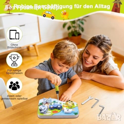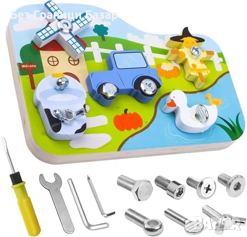 Нова Монтесори дървена играчка ферма с винтове и инструменти 3+ деца игра