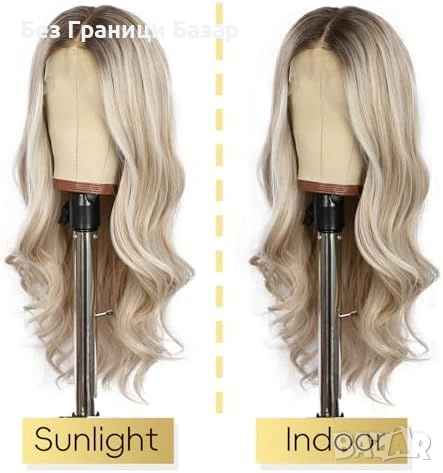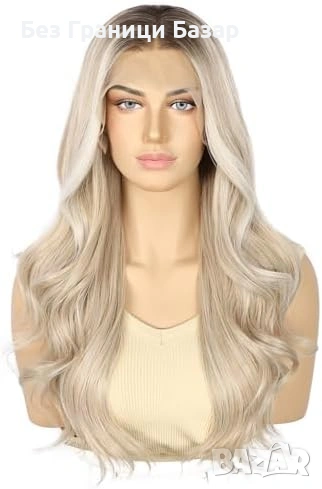 Руса дантелена перука с тъмни корени и естествен body wave ефект