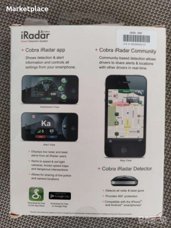 Cobra iRadar – компактен радар детектор с Bluetooth. Работи отлично, засича X / K / Ka ленти и има 360° лазерно покритие. Поддържа POP и Instant‑On. Свързва се с телефона чрез приложението iRadar за предупреждения в реално време.