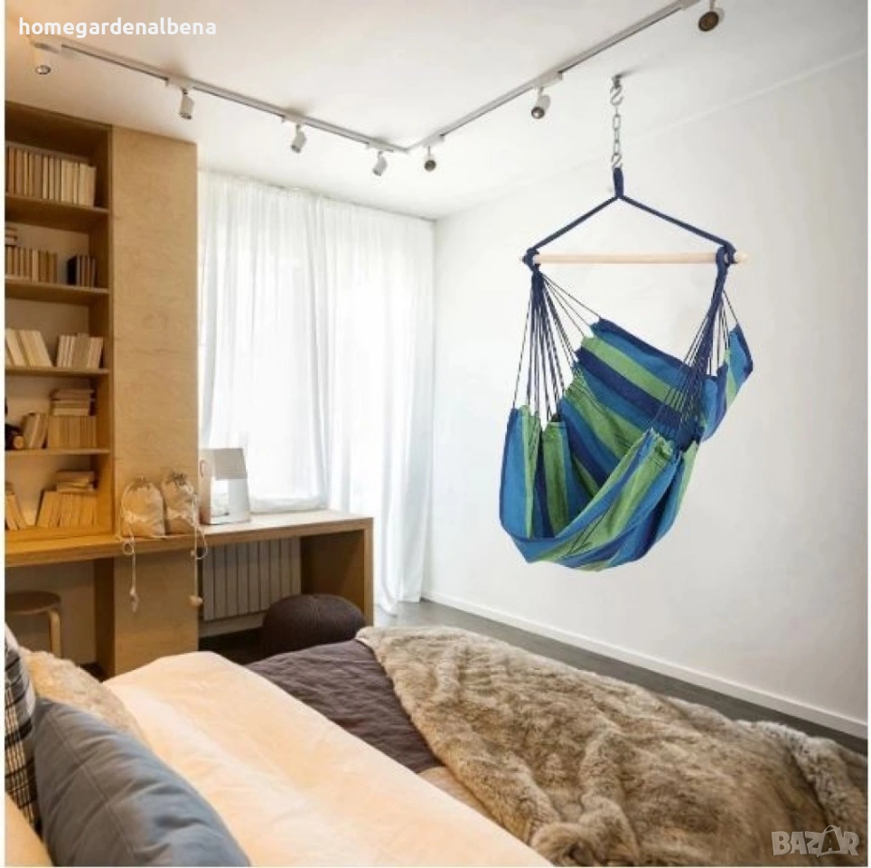 хамак стол, висящ хамак, хамак с въжета, хамак 2в1, хамак градина, хамак тераса, хамак веранда, хамак до 150 кг, висящ стол, хамак цветен, релакс градина, хамак промоция