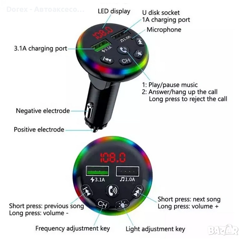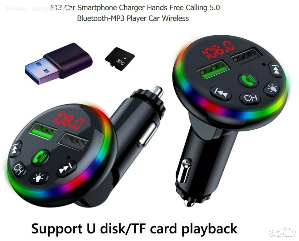 5. Технологията за безжично предаване на FM с пълна честота може директно да чете аудио файлове на Bluetooth мобилни телефони/TF карта/U дискове.