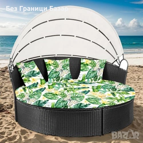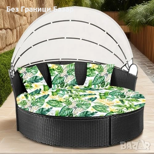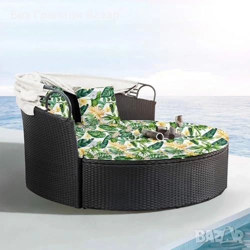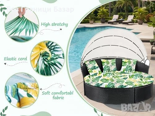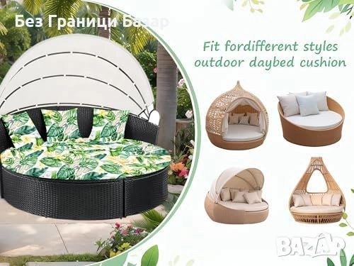 Нов Калъф за кръгло външно легло 168 см с 3 калъфа за възглавници със зелени листа десен