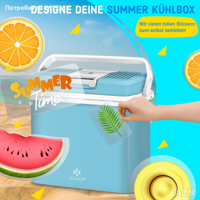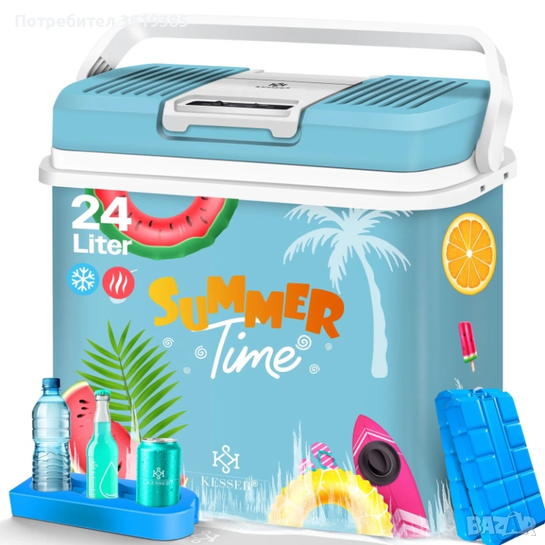 Термоелектрическа охладителна чанта KESSER KE-24L с 2 ледени пакета и държач за напитки.