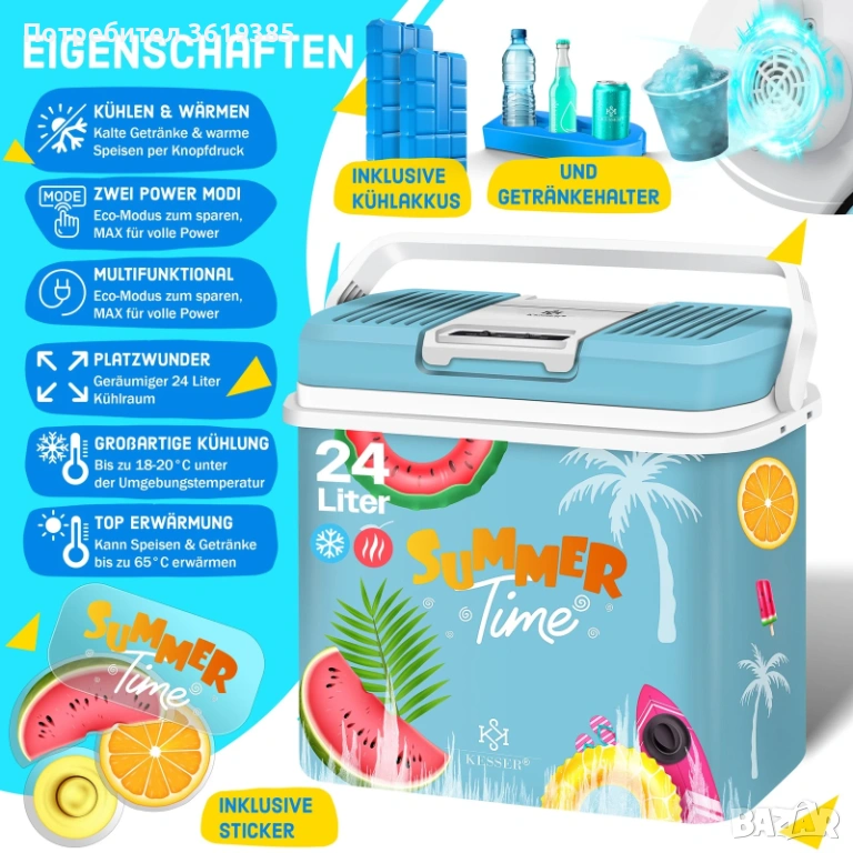 - 1 x Хладилна кутия с 230 V и 12 V щепсели
