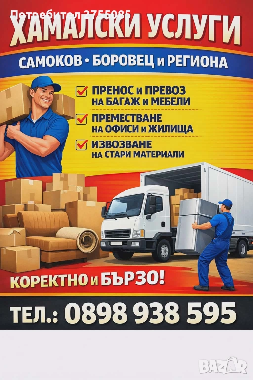 Предлагаме хамалски услуги за района на Самоков и Боровец.