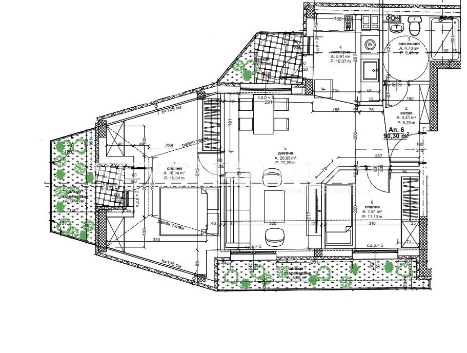 Агенция за недвижими имоти SEVEN HILLS ви предлага тристаен апарамент, с обща площ от 75.57 кв.м. в новострояща се сграда с по два апартамента на етаж.
