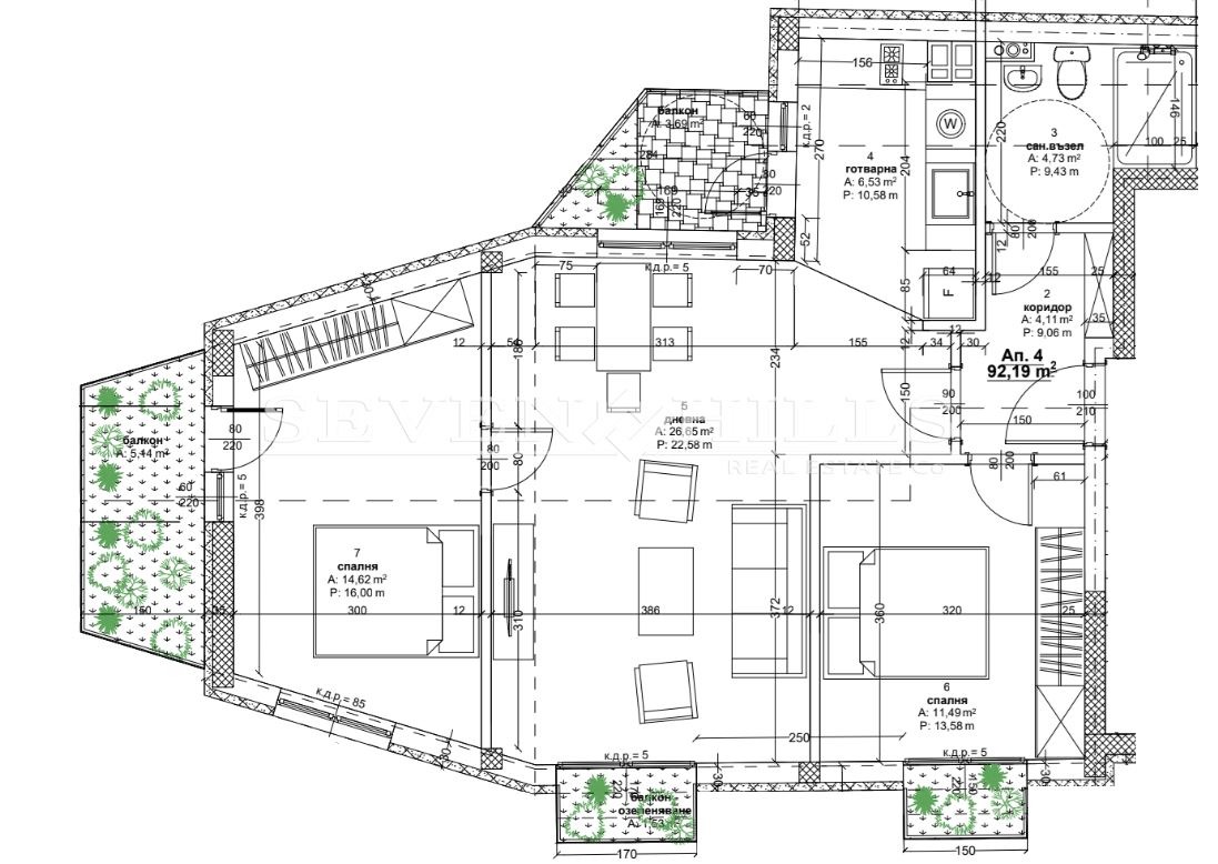 Агенция за недвижими имоти SEVEN HILLS ви предлага тристаен апартамент с обща площ от 122.62 кв.м. в новострояща се сграда с по два апартамента на етаж.