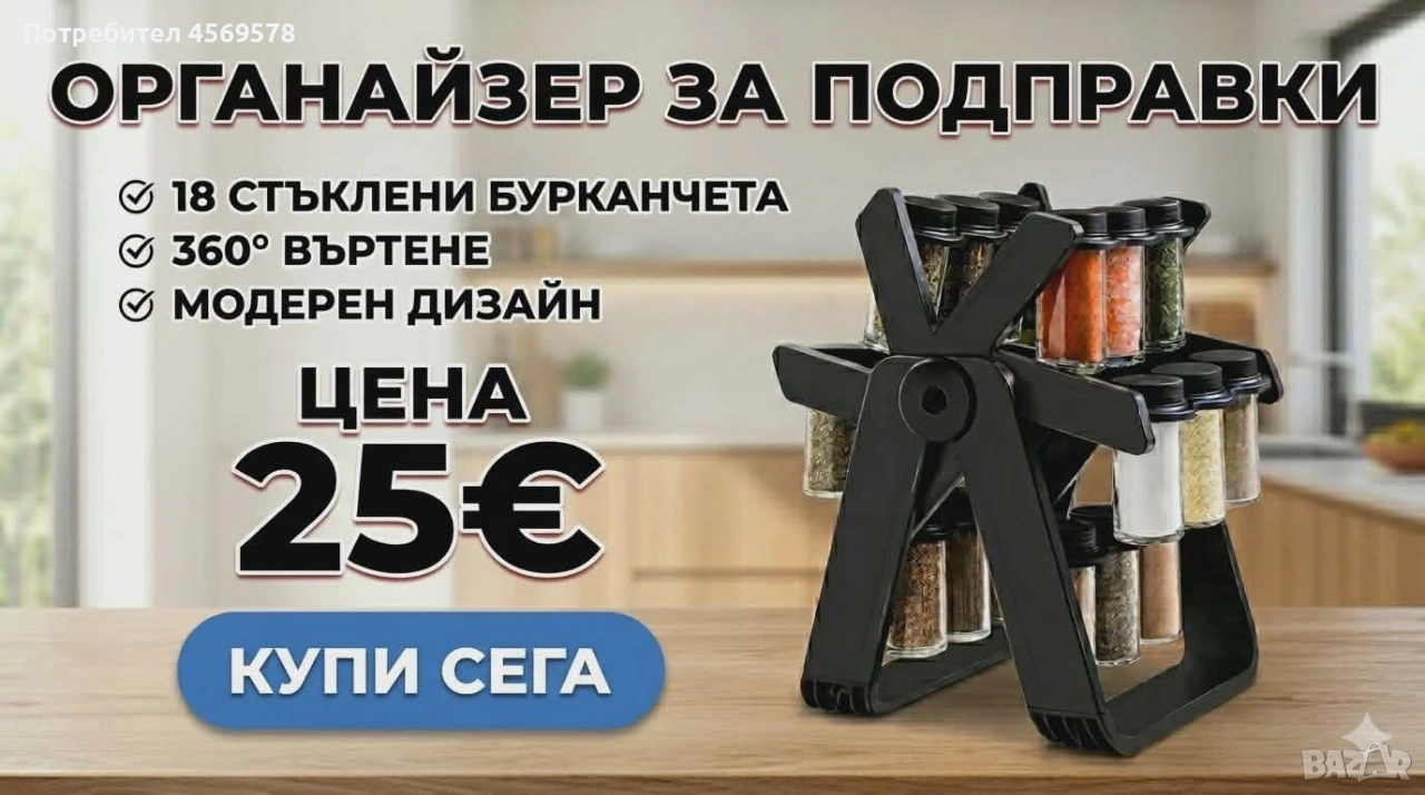 🌷ПРОЛЕТНА ОФЕРТА!🌷 🌿ВЕЛИКДЕНСКА ПРОМОЦИЯ!🌿 💥💥ТОП ЦЕНА: 25 €💥💥 🗂Организирай кухнята си със стил! ✨ ‼️​Писна ли ти да търсиш подправките в шкафа? 💢Превърни готвенето в удоволствие с нашия елегантен въртящ се органайзер! 🥘 ​💎 Защо ще го обикнеш? ✅️​18 стъклени бурканчета: Запазват аромата и свежестта на подправките за по-дълго. ✅️​360° въртяща се стойка: Всичко необходимо е на една ръка разстояние. ✅️​Модерен дизайн: Изчистена комбинация от стъкло и черен мат – пасва на всяка кухня. ✅️​Компактни размери: Спестява място, докато събира всичко важно. ​📐 Характеристики: ✅️​Размери на стойката: 23 см (дължина) х 34 см (височина). ✅️​Размери на бурканчетата: 5 см (диаметър) х 9.5 см (височина). ✅️​Материали: Висококачествено стъкло и издръжлив ABS капак. ​ 🚚 Бърза доставка: 3-5 работни дни с Еконт. ​📩 Поръчай сега на лично съобщение и подреди кухнята си още днес! ​#кухня #органайзер #подправки #интериор #дом #готвене #практично #кухненскиаксесоари #кулинария #организациянадома #spicerack #kitchengadgets